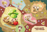 ちまきゃら中心のポスカセット(10枚入り)と麻袋コピー本になりそうです。