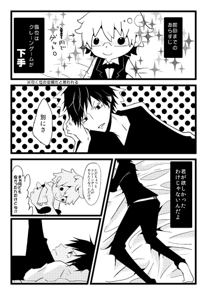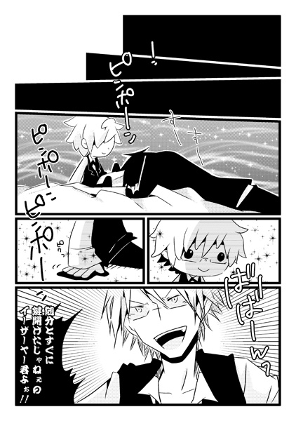 怪談レストランとデュラララ!!にハマっております。 とりあえず臨也が素敵です。イザシズ好きですが描いてる物はシズイザみたいです。シズちゃんの単純な性格に翻弄されてる臨也が好きです。